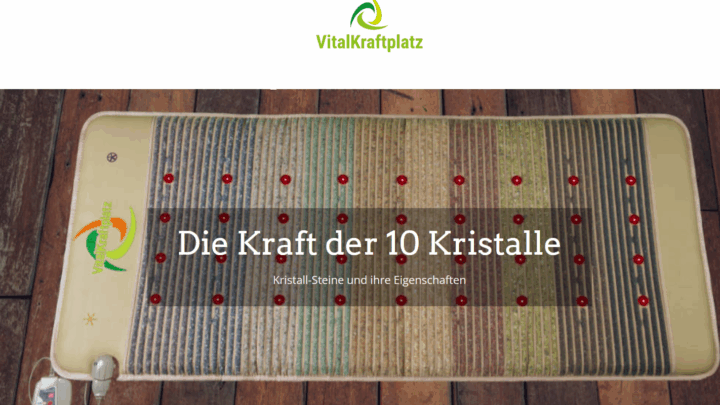 Sonderaktion Kristall-matte für 966 Euro Sonderaktion: Kristallmatte der neuen Generation – nur 966 € bis zum 30. Januar 2025! Erleben Sie die Kraft der neuen Zeit – mit der weiterentwickelten Kristallmatte der Vital-Kraftplatz eG.Die beliebte Matte wurde in ihrer neuesten Generation noch einmal verfeinert und mit 10 kraftvollen Kristallsteinen ausgestattet (bisher 7).So entfaltet sie ihre energetische Wirkung jetzt noch intensiver und harmonischer. Diese Matte verbindet modernste Technologie mit jahrzehntelangem Wissen aus Frequenzarbeit, alternativen Energien und Komplementär-Medizin.Heilpraktiker, Ärzte, Apotheker und Gesundheitsberater aus unserem Netzwerk haben gemeinsam an der Weiterentwicklung mitgewirkt – für Ihr ganzheitliches Wohlbefinden. Profitieren Sie JETZT: Sonderaktion: nur 966 € (gültig bis 30. 11. 2025) 3 Jahre Garantie auf Ihre neue Kristallmatte Entwickelt und hergestellt mit Liebe, Erfahrung und Bewusstsein für die Energien der neuen Zeit Spüren Sie die Schwingung. Aktivieren Sie Ihre Lebensenergie.Die Kristallmatte der neuen Generation – ein Erlebnis für Körper, Geist und Seele.